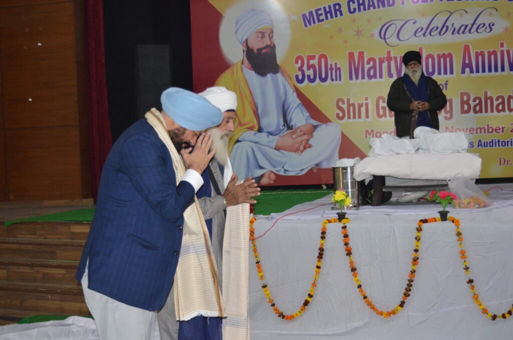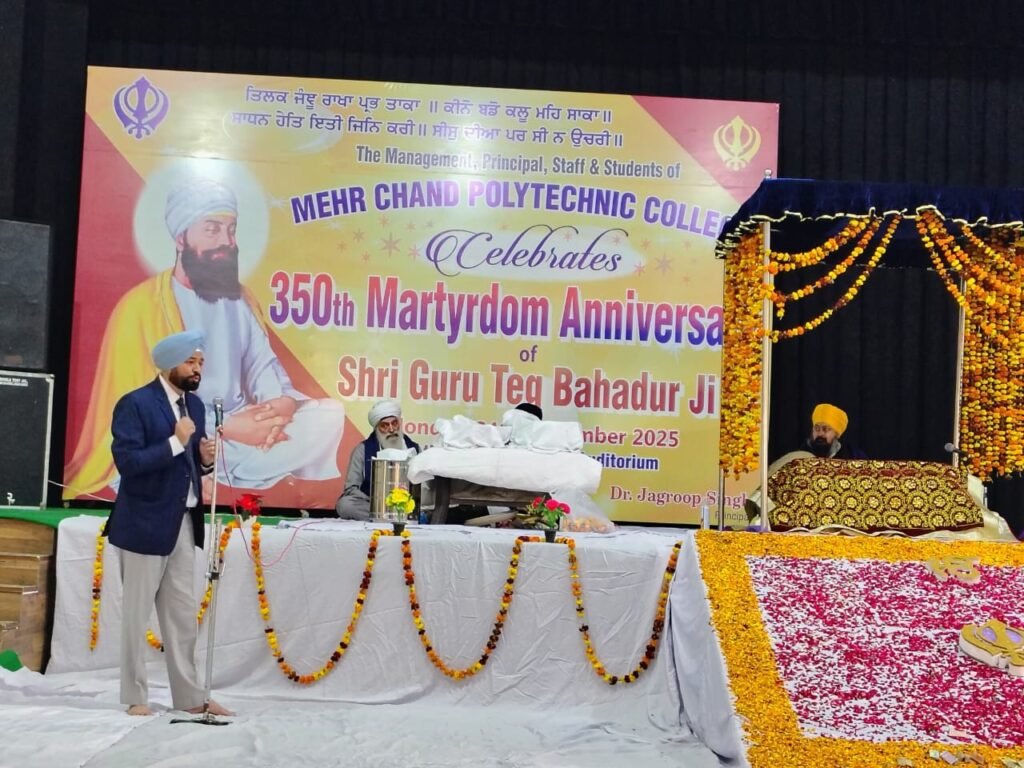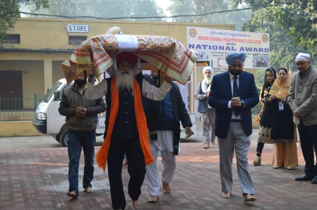 जालंधर ब्रीज: मेहरचंद पॉलिटेक्निक कॉलेज में श्री गुरु तेग बहादुर जी के 350वें शहीदी दिवस के उपलक्ष्य में भव्य समारोह आयोजित किया गया, जिसमें सैकड़ों विद्यार्थी और स्टाफ सदस्य उपस्थित हुए। इस अवसर पर श्री गुरु ग्रंथ साहिब जी का प्रकाश किया गया, सुखमनी साहिब पाठ के भोग डाले गए, कीर्तन श्रवण किया गया और तत्पश्चात सभी स्टाफ और विद्यार्थियों ने पंगत में बैठकर लंगर का प्रसाद ग्रहण किया।