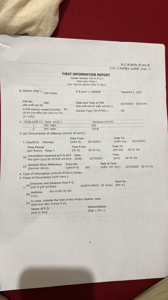 यह जानकारी पंजाब के खाद्य और सिविल सप्लाई मंत्री श्री भारत भूषण आशू ने आज यहाँ दी। आशू ने बताया कि विभाग को सूचना मिली थी कि तरनतारन जिले के हरीके कस्बे में पड़ती रत्ता गुद्दा अनाज मंडी में दूसरे राज्यों से लाया गया 1509 /बासमती की आड़ में परमल धान उतारा जा रहा है। जिस पर कार्रवाई करते हुए प्रताप कमिशन एजेंट के मालिक प्रताप सिंह और ट्रक चालक के खिलाफ विभिन्न धाराओं अधीन एफ.आई.आर. दर्ज करवाई गई।