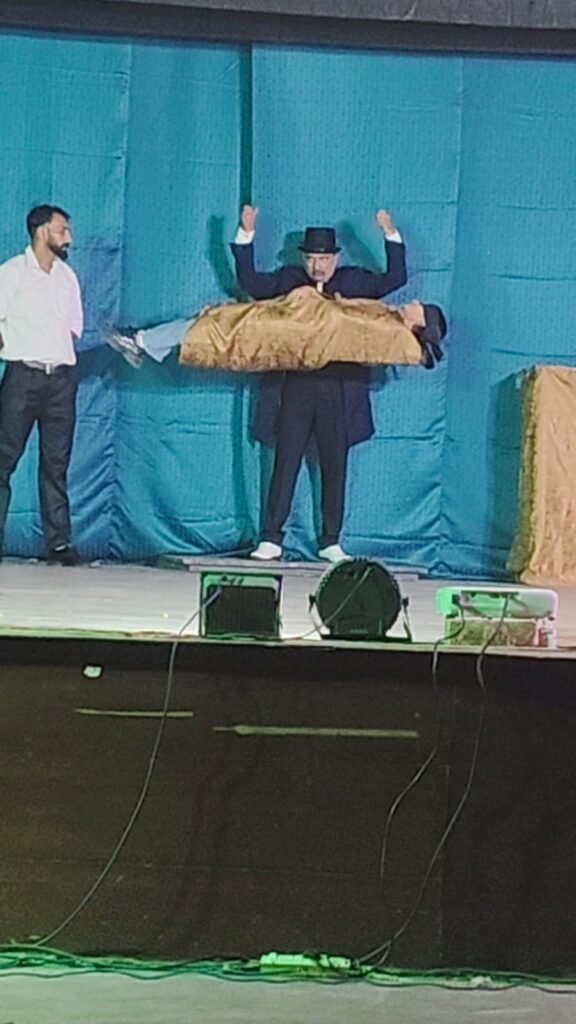 कार्यक्रम का शुभारंभ प्रिंसिपल डॉ. जगरूप सिंह ने रिबन काटकर किया। जादूगर मतुल वर्मा ने मंच पर कई रोमांचक, हैरान कर देने वाले और मनोरंजक जादुई करतब पेश किए — जैसे कि लड़की को हवा में उड़ाना, खाली लोटे से बार-बार पानी निकालना, बक्से में लड़की के आधे हिस्से को घुमाना, और मुंह से ब्लेडों की लंबी श्रृंखला निकालना।