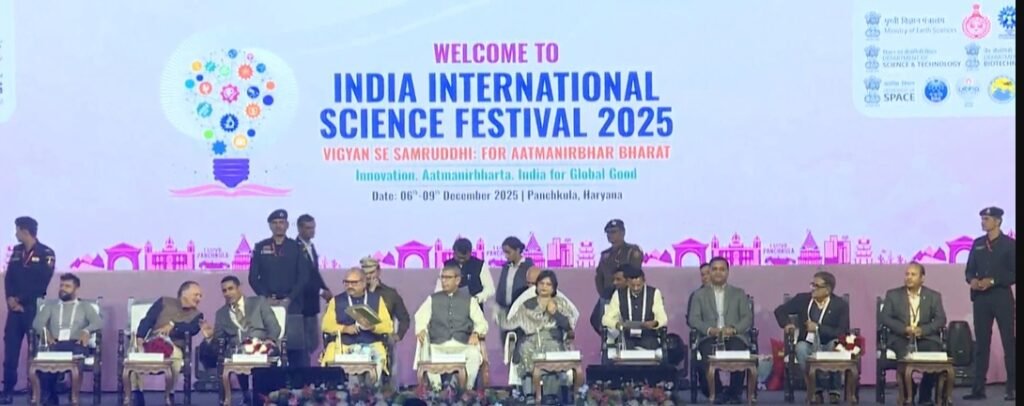 जालंधर ब्रीज:भारत अंतर्राष्ट्रीय विज्ञान महोत्सव (IISF) 2025 के समापन समारोह में हरियाणा के राज्यपाल प्रो. अशीम कुमार घोष, फर्स्ट लेडी मित्रा घोष के साथ मुख्य अतिथि के रूप में पंचकूला में आयोजित कार्यक्रम में शामिल हुए। कार्यक्रम में डी. सेंथिल पांडियन, IAS, संयुक्त सचिव, पृथ्वी विज्ञान मंत्रालय (MoES); डॉ. सूर्यचंद्र ए. राव, निदेशक, IITM; डॉ. शिव कुमार शर्मा, नेशनल ऑर्गनाइजिंग सेक्रेटरी, VIBHA; तथा अन्य गणमान्य अतिथि भी उपस्थित रहे।