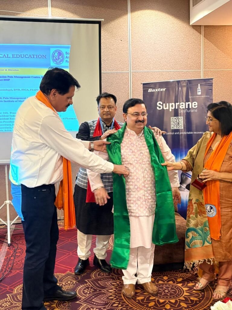 इस अवसर पर ट्राइसिटी के 5 वरिष्ठ एनेस्थीसियोलॉजिस्ट्स को उनके जीवनकाल उपलब्धि और क्षेत्र में समर्पण के लिए सम्मानित किया गया। प्रोफेसर वाई के बत्रा, विभागाध्यक्ष, एनेस्थीसिया, मैक्स मोहाली और पूर्व विभागाध्यक्ष पीजीआईएमईआर, प्रोफेसर बलवीर चब्ब्रा, पूर्व विभागाध्यक्ष एनेस्थीसिया पीजीआईएमएस रोहतक और एम्स बिलासपुर, कर्नल जेएस जोहर (सेवानिवृत्त) और ब्रिगेडियर अमरजीत (सेवानिवृत्त) को सम्मानित किया गया।