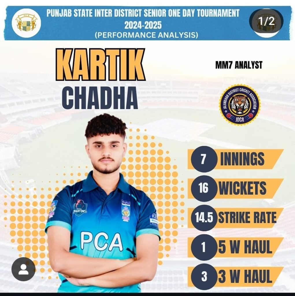 कार्तिक चढ़ा ने पंजाब स्टेट इंटर डिस्ट्रिक्ट सीनियर वन डे टूर्नामेंट में लिए 16 विकेट