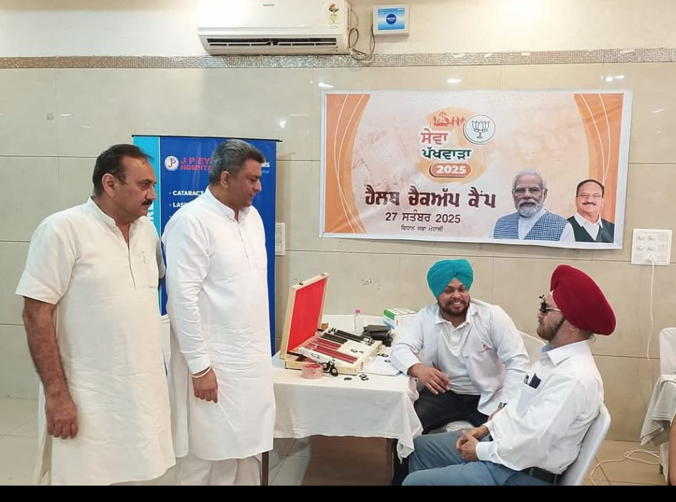 जालंधर ब्रीज: सेवा पखवाड़े के अंतर्गत आज भारतीय जनता पार्टी (भाजपा) मोहाली द्वारा मेडिकल एवं ब्लड कैंप का आयोजन किया गया। कैंप के उद्घाटन अवसर पर भाजपा मीत प्रधान सुभाष शर्मा, जिला प्रधान संजीव वशिष्ठ, लीगल सेल कनवीनर तथा सेवा पखवाड़ा टीम मोहाली के इंचार्ज एन.के. वर्मा उपस्थित रहे।