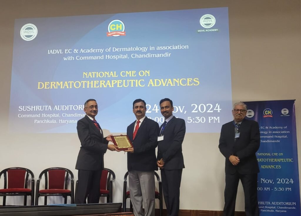 कार्यक्रम के मुख्य अतिथि मेजर जनरल राजेश वर्मा, एमजी मेडिसिन (पश्चिमी कमान) चंडीमंदिर ने इस तथ्य पर प्रकाश डाला कि त्वचा रोग के क्षेत्र में उल्लेखनीय प्रगति हुई है और विभिन्न प्रकार के प्रणालीगत त्वचा विकारों के साथ-साथ रोगियों के समग्र प्रबंधन में त्वचा विज्ञान प्रमुख रूप से योगदान दे रहा है।