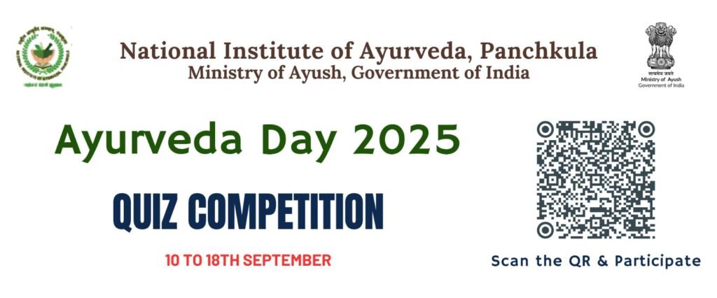 इस समारोह के एक भाग के रूप में, राष्ट्रीय आयुर्वेद संस्थान, पंचकूला अपनी 10वीं आयुर्वेद दिवस ऑनलाइन प्रश्नोत्तरी प्रतियोगिता भी आयोजित कर रहा है, जो सभी आयु वर्गों और भारतीय नागरिकों के लिए खुली है। पंजीकरण 10 से 18 सितंबर 2025 तक शाम 5:00 बजे तक खुले रहेंगे। परिणाम 22 सितंबर को घोषित किए जाएँगे और विजेताओं को आयुर्वेद दिवस पर सम्मानित किया जाएगा। प्रथम और द्वितीय स्थान प्राप्त करने वाले विजेताओं को स्मृति चिन्ह और प्रमाण पत्र सहित आकर्षक पुरस्कार प्रदान किए जाएँगे। इच्छुक प्रतिभागी इस लिंक के माध्यम से पंजीकरण कर सकते हैं: https://rb.gy/xjfm9f