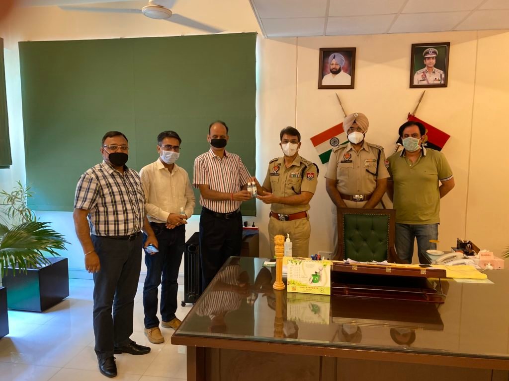 डॉ. बी आर आंबेडकर नैशनल इंस्टीच्यूट आफ टेक्नालॉजी (एन आई टी) जालंधर के निदेशक डाक्टर ललित कुमार अवस्थी ने जालंधर के एस एस पी (देहात) नवजोत सिंह माहल को आज उनके कार्यालय में इस सैनेटाइजर की 100-100 एम एल की 216 बोतलें उपलब्ध कराईं । इसी मात्रा में सैनेटाइजर सी आर पी एफ और बी एस ऍफ़ को भी उपलब्ध कराये जा चुके हैं।