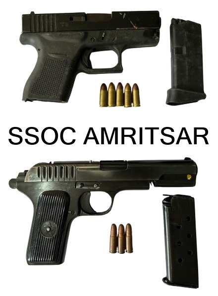 गिरफ्तार किए गए आरोपियों की पहचान जगप्रीत सिंह उर्फ जग्गा और मुहम्मद सिंह, दोनों निवासी काज़ी कोट कलां, तरनतारन, लवीश नाहर निवासी बोरीवाला बाजार, गेट हकीमान, अमृतसर और अमरबीर सिंह, निवासी प्रीत एवेन्यू, गेट हकीमान, अमृतसर के रूप में हुई है। बरामद हथियारों में एक 9 मिमी ग्लॉक पिस्तौल, एक मैगज़ीन और पांच जिंदा कारतूस सहित तथा एक .30 बोर स्टार मार्क पिस्तौल, एक मैगज़ीन और तीन जिंदा कारतूस सहित, शामिल हैं।