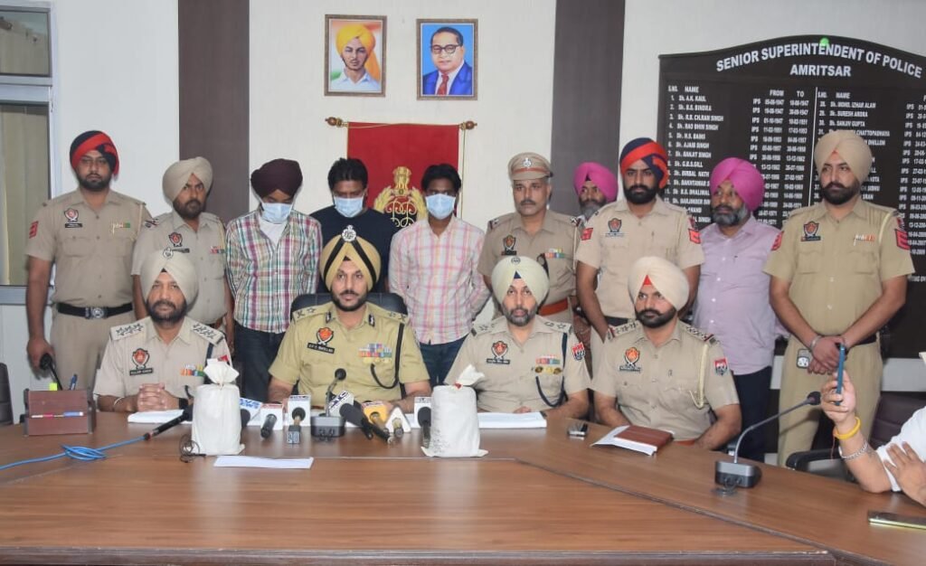 यह जानकारी देते हुए पुलिस महानिदेशक (डी.जी.पी.) गौरव यादव ने बुधवार को बताया कि पकड़े गए व्यक्तियों की पहचान अमृतसर के पिंड भकना कलां निवासी करनदीप सिंह (22), जीवन सिंह (19) और मनजिंदर सिंह (21), जो दोनों तरनतारन के चोहला साहिब के निवासी हैं, के रूप में हुई है। पुलिस टीमों ने उनकी टोयोटा एटिओस कार, जिसमें वे सफर कर रहे थे, भी जब्त कर ली है।
