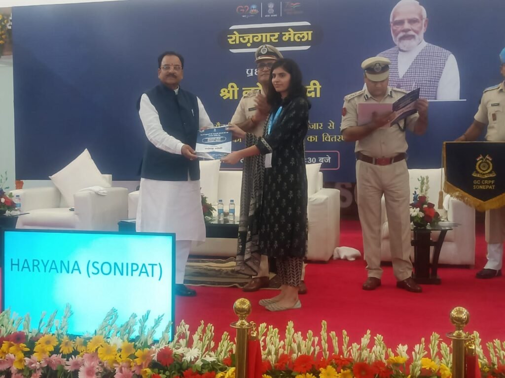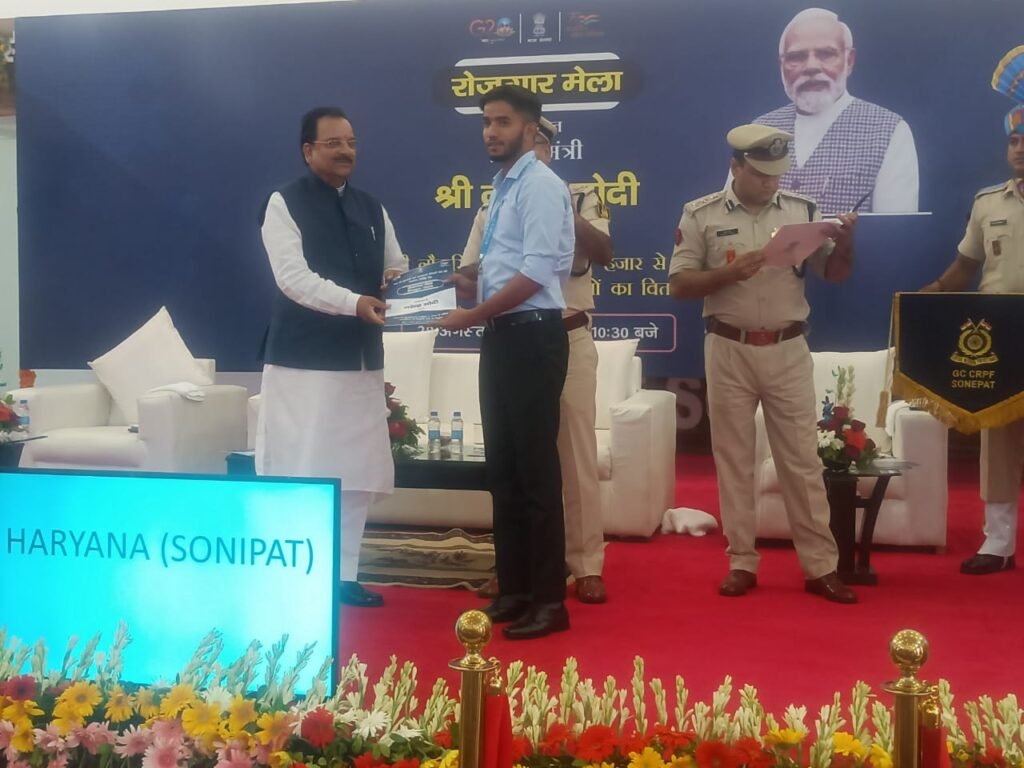 जालंधर ब्रीज: केंद्रीय रक्षा एवं पर्यटन राज्य मंत्री अजय भट्ट ने सीआरपीएफ ग्रुप सेंटर सोनीपत में आयोजित रोजगार मेले दौरान केंद्रीय सशस्त्र बलों के 182 युवाओं को नियुक्ति पत्र प्रदान किये। 8वें रोजगार मेले में नियुक्ति पत्र प्राप्त करने वाले युवाओं एवं उनके अभिभावकों को बधाई देते हुए अजय भट्ट ने कहा कि आज का दिन इन युवाओं के लिए नये जीवन की शुरूआत होगी। उन्होंने कहा कि ये युवा आज से अपना जीवन देश के लिए समर्पित करने जा रहे हैं। उन्होंने कहा कि आज का सुनहरा अवसर युवाओं की मेहनत से आया है।