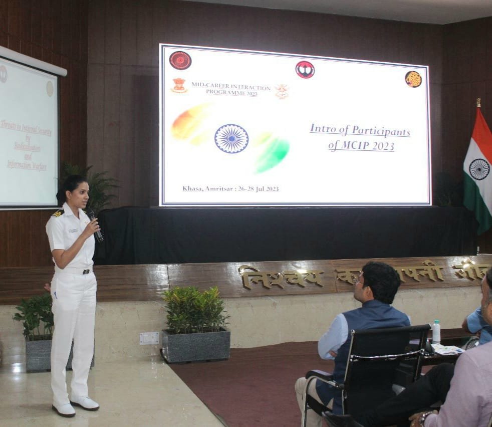 जालंधर ब्रीज: पश्चिमी कमान द्वारा वर्ष 2023 के लिए एक तीन दिवसीय मिड-कैरियर संवाद कार्यक्रम 26 से 28 जुलाई,2023 तक अमृतसर में सिविल मिलिट्री समायोजन पर ध्यान केंद्रित करते हुए आयोजित किया जा रहा है। कार्यक्रम में अखिल भारतीय सेवाओं, भारतीय सेना, नौसेना और वायु सेना के अधिकारी भाग ले रहे हैं और इसका उद्देश्य एकीकरण के लिए समसामयिक विषय “कट्टरता और सूचना युद्ध द्वारा भारत की आंतरिक सुरक्षा को खतरा” पर विचारों को साझा करने के लिए एक मंच प्रदान करना है।